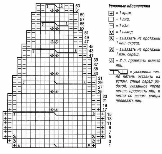Вам потребуется: 150 г для голубой пряжи (55 м/50 г); спицы № 7; набор чулочных спиц № 7; крючок №6