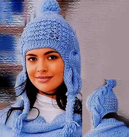 Вязаная спицами шапка с ушками – это то, что надо для зимы! Шапка смотрится просто потрясающе – очень хорошо был выбран и цвет пряжи, нежно-голубой, да и ушки не дадут замерзнуть вашим ушкам от ледяного зимнего ветра:)