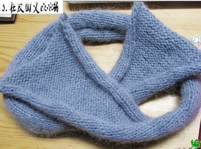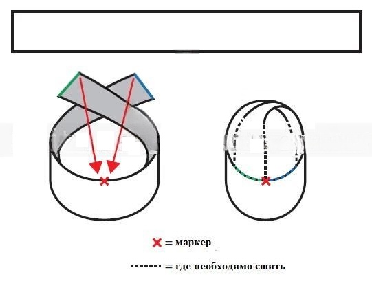 Схема напоминает восьмёрку: сначала сшивается в кольцо, затем делается перекрут и соединяются внутренние края.