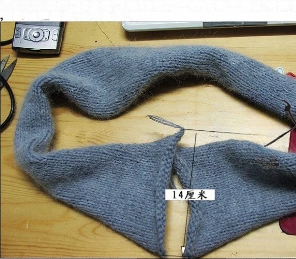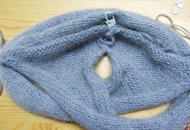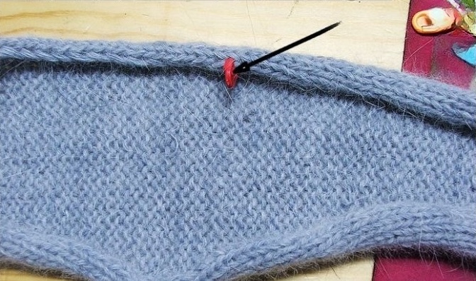Вставить эти 20 петель между основными 108 петлями. Сверху провязать ещё 10 рядов.