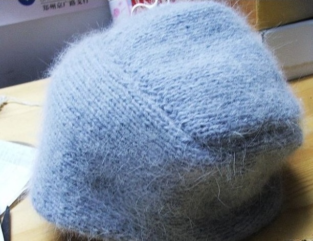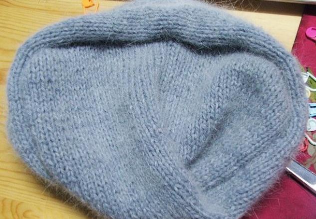 После завершения всех рядов и сокращений, сшить шапку, сменить спицы.