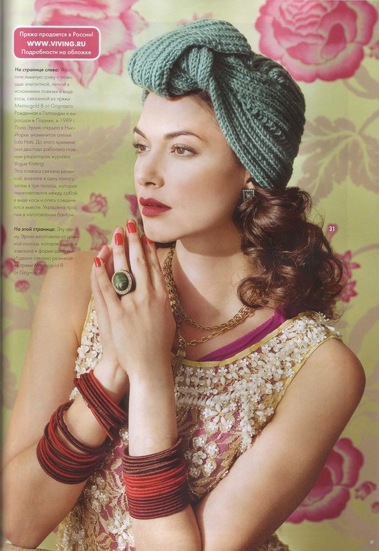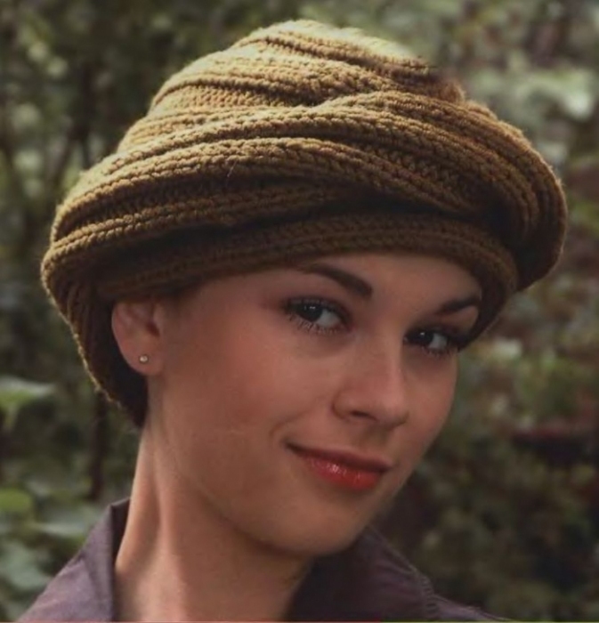 Экстравагантная вязаная шапка-чалма в ретро-стиле вошла на подиумы в 60-е годы XX века. Мода-винтаж, кинообразы и такие интересные фасоны возвращаются в современную моду. Например, главным трендом сезона стала вязаная шапка-чалма.