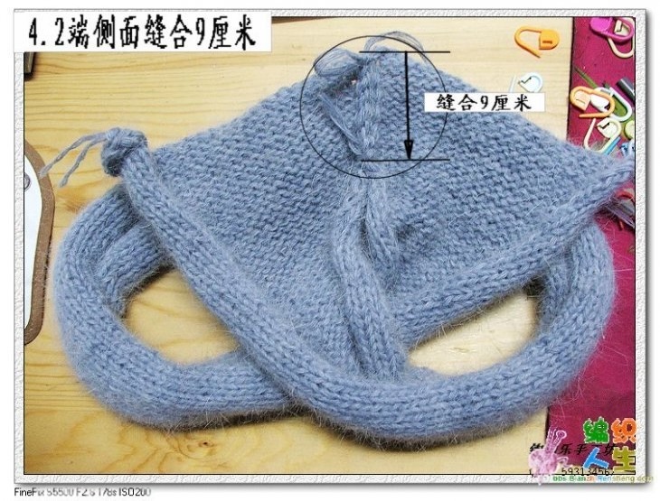 Пришить верхние края к центру шапки, создавая перекрут (перекрещивание)