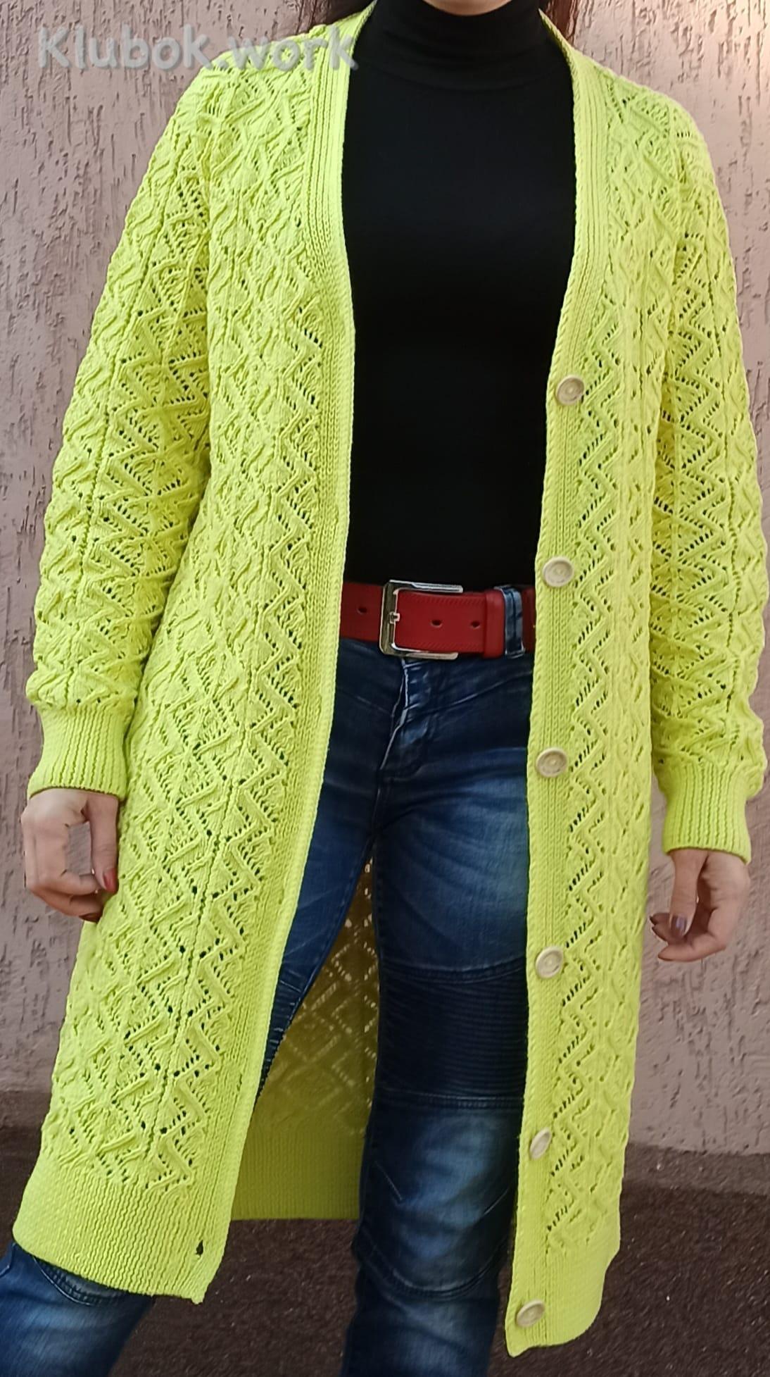 Вязать в зеркальном отображении (т.е. первую от планки косу вязать узором «Коса 2», вторую – узором «Коса 1»), не забывая делать петли для пуговиц на планке по краю.