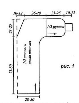 Выполнив 60-62 ряда от начала оформления пройм закройте петли плеча. Прибавленные петли проймы оставьте открытыми.