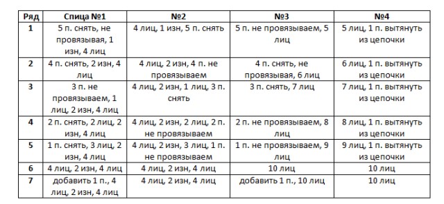 - в первом вяжем попеременно 1 лиц и 2 вместе лиц.