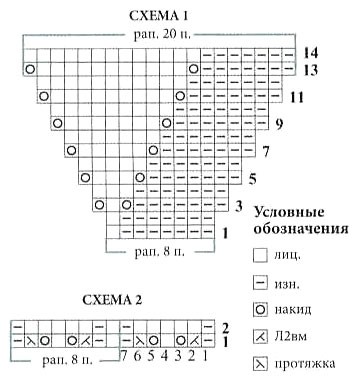 Плотность вязания: 26 п. х 32 р. = 10 х 10 см при вязании чул. вязкой спицами № 3,25.