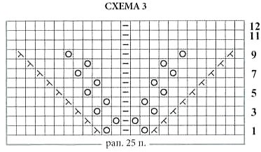 Сл. ряд 23 н. чулочной вязкой (ладонь), ост. 25 п. (тыльная сторона) вяжите по схеме 3. Провяжите прямо 1 ряд.
