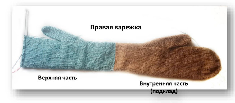 Сначала свяжем внутреннюю варежку (подклад), а затем верхнюю (наружную).