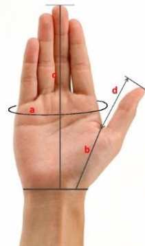 | Длина кисти (см) c | 13,5 | 15,5 | 17,5 | 19,5 |