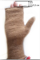 Провяжите такое же количество рядов, как для внутренней варежки + 1 ряд.