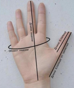 Найти крайнюю лицевую петлю на ладони (слева от пальца) — центральная.