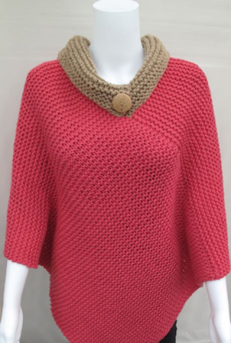 To knit the front side, you need to cast on 44 stitches. Every 6 rows, increase by 1 stitch on both sides of the "cables" pattern. After the 39th row, start knitting the "ribbing" at the edges of the poncho, and at the 65th row, begin to knit the neckline.