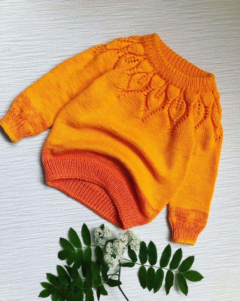 50-й ряд: 33 лицевые, отложить 43 петли рукава, набрать 8 петель подреза, 69 лицевых (перед), снова отложить 43 петли второго рукава, набрать 8 петель подреза и довязать 32 лицевые (спинка).
