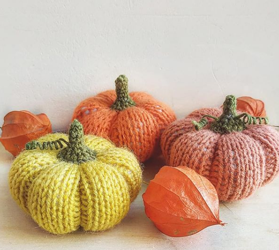 Закрываем петельки, обрезаем нитку, оставив длинный хвостик. Иглой стягиваем 6 п. первого р., прячем конец нити внутрь. Пришиваем к тыкве черенок и усики.