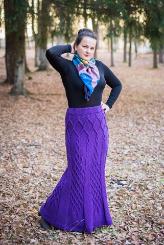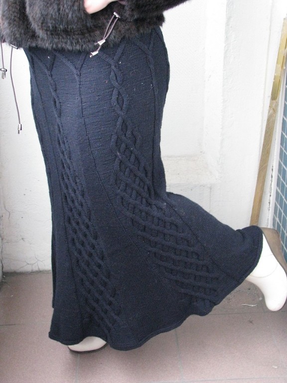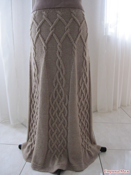 Юбка спицами с вертикальными аранами -