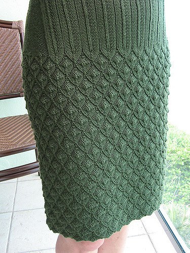 After finishing the bottom, I removed the waste yarn from the top and knitted the upper part of the skirt with 3.75 mm needles to the desired length.