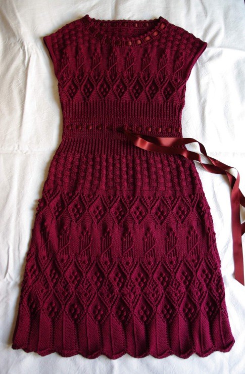 Repeat rows 3-6 until the piece reaches 21.5, 26.5, (31.5) cm from the bottom to the neckline, or your desired length.