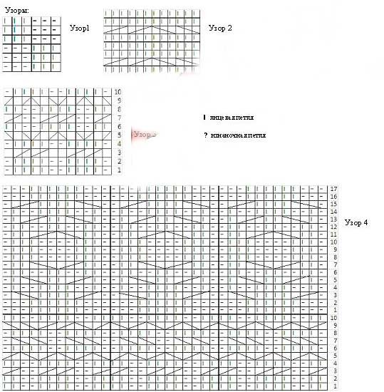 1. Резинка: чередуем по порядку 2 ЛП, 2 ИП. С изнаночной стороны вяжем по рисунку.