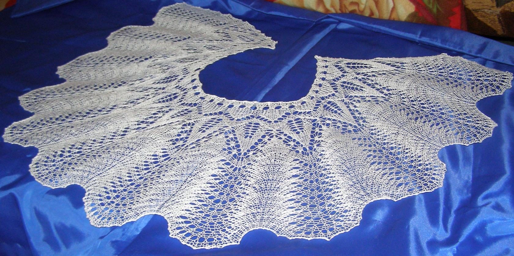 Влюбилась я в этого Шевалье сразу и бесповоротно. И вот моё воплощение! Я вязала нитками х/б неизвестного происхождения, потому что приспичило, а в магазин неохота было бежать. Пришлось потом крахмалить. Не всё получилось с первого раза, сначала воротник стоял, как кираса, перебавила крахмала потому что. Достаточно оакзалось 0,5 ч.л на стакан воды.