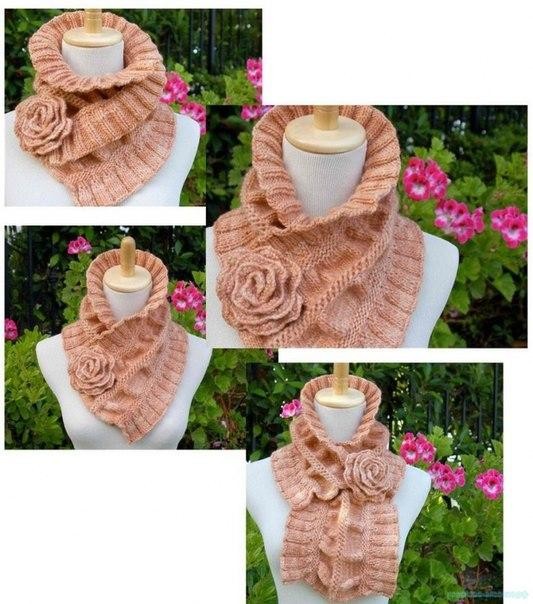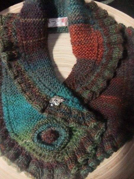 Когда свяжете всю длину шарфа, по краю вкруговую набираем резинку 2лиц, 2 изн (следите чтобы резинка у вас замкнулась) на скосах делаем по 1 накиду, и вяжем от 7 до 10 рядов по желанию.