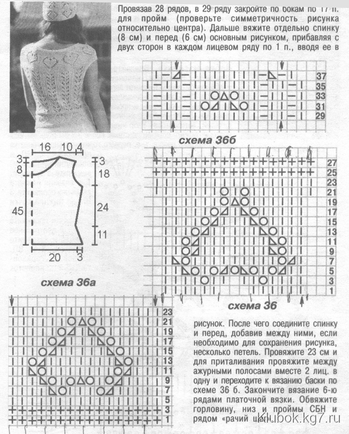 лиц. в одну и переходите к вязанию баски по схеме36б . Закончите вязание 6 рядами платочной