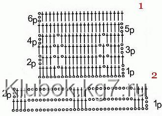 №1, повторяя его с 1-го по 6-й ряд. Провязав 23 см от начального ряда делайте