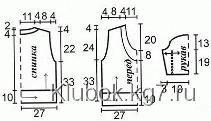 и спинки, которые вяжутся снизу вверх. На полочках - нагрудные вытачки.