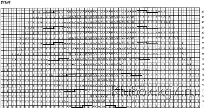 Ажурный узор:вязать по схеме.