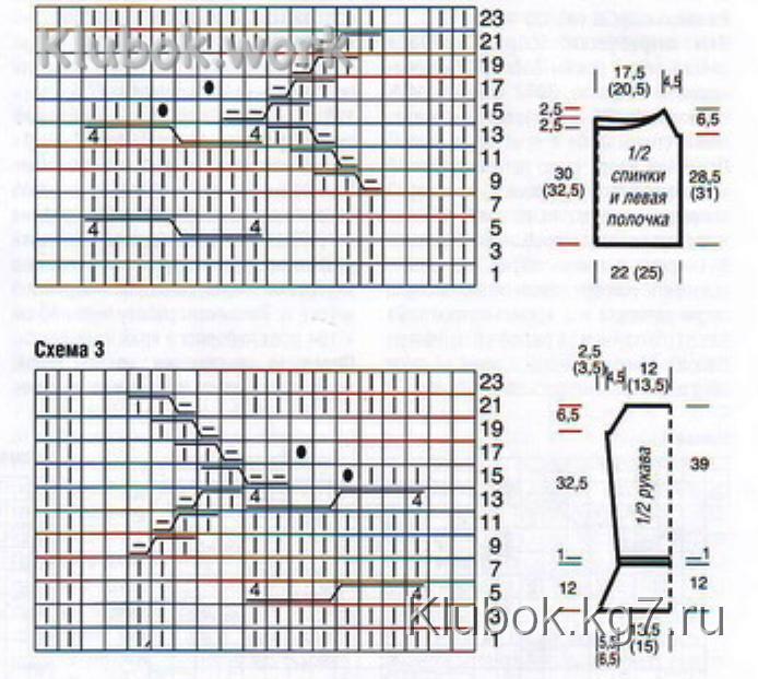 Правая полочка: вязать симметрично и с косой В.