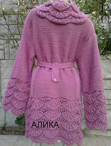 10ряд - 1 лиц, * 1 лиц, накид - четыре раза, провязать лицевую иизнаночную вместе лицевой за заднюю стенку, 1 изн - пять раз, 1 лиц,накид - четыре раза*, 2 лиц