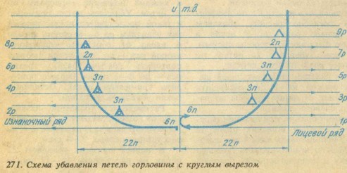 271(рис.271) Схема убавления петель горловины с круглым