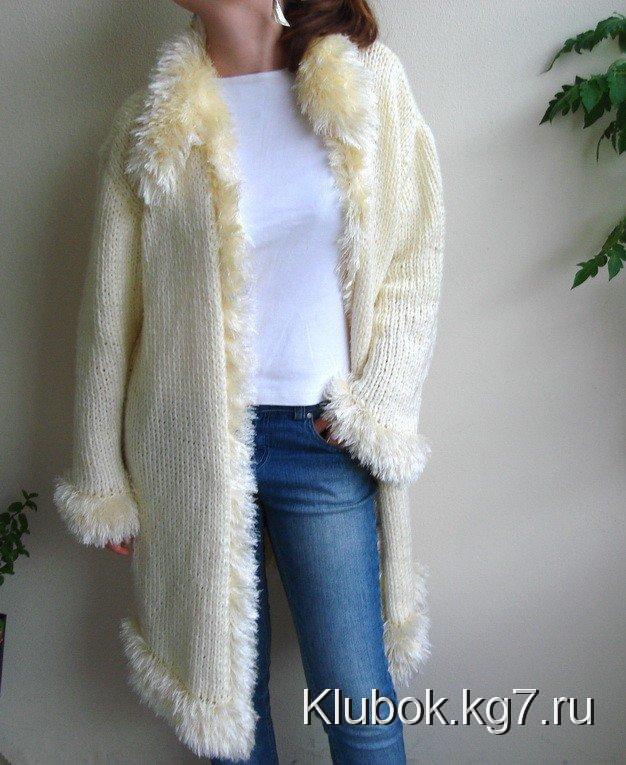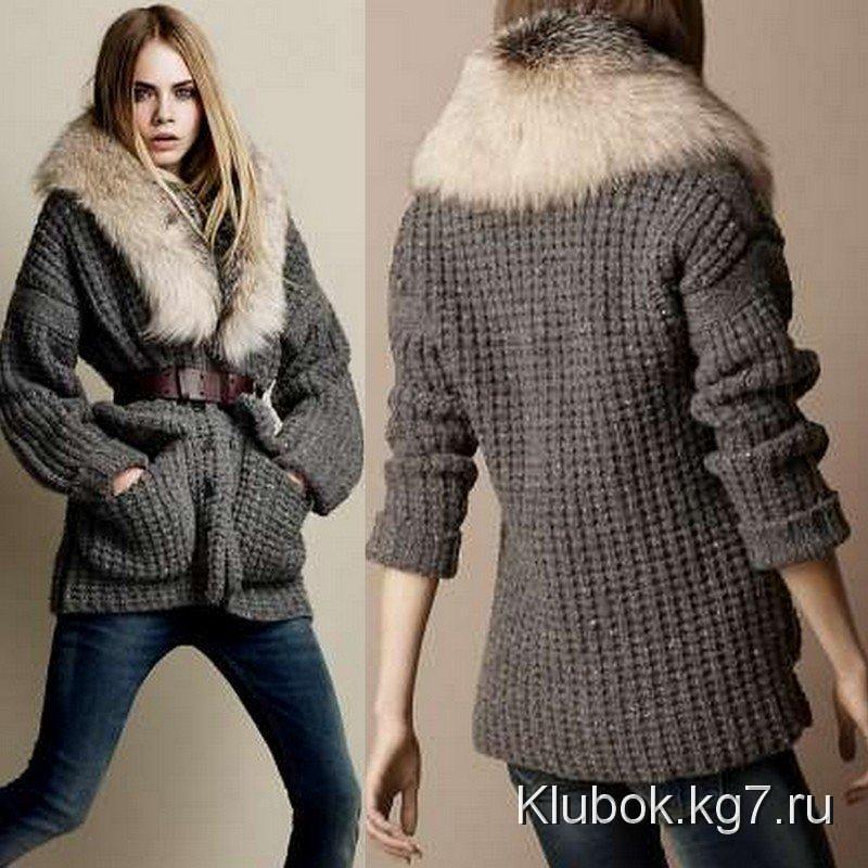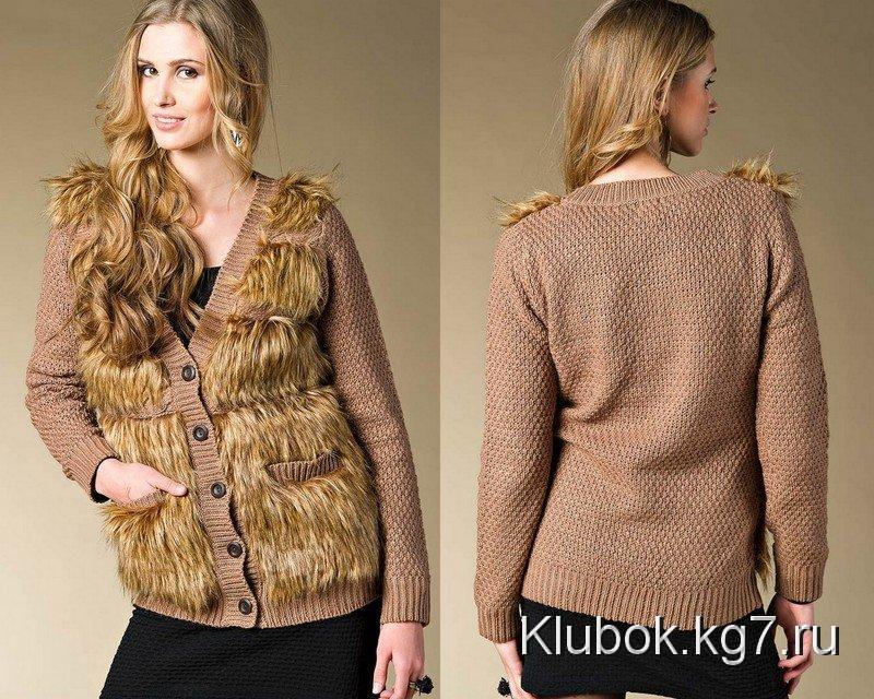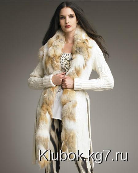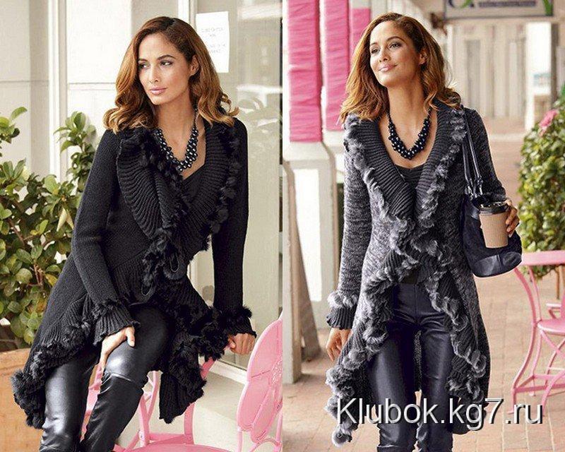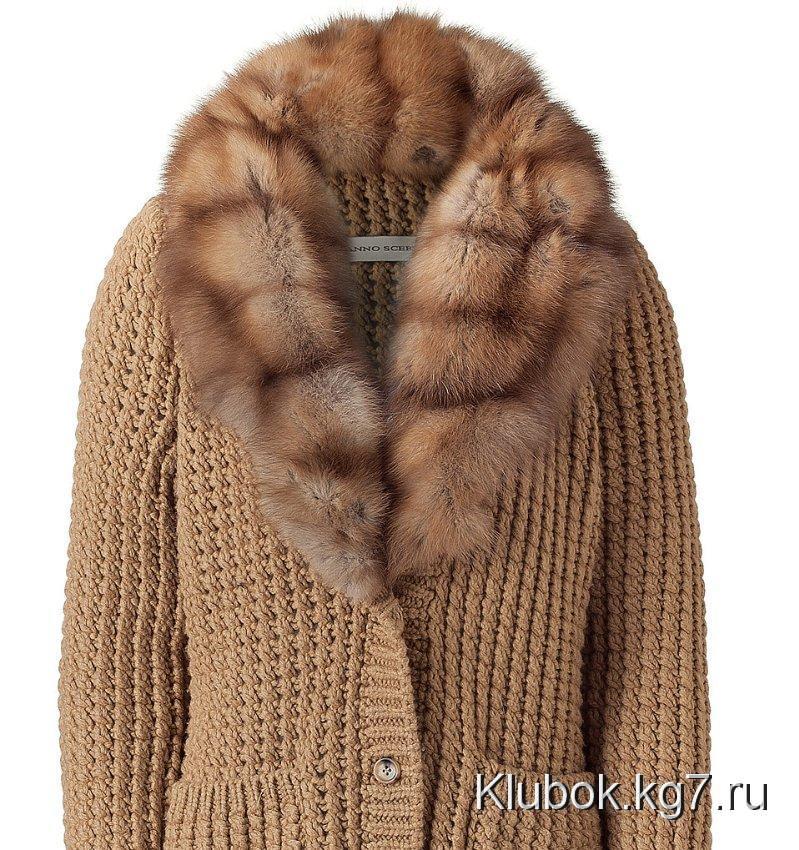 Кардиган с меховым воротником или большим капюшоном с меховой опушкой выглядит роскошно. Его можно носить и в качестве верхней одежды осенью и весной. Это самая модная фишка!
