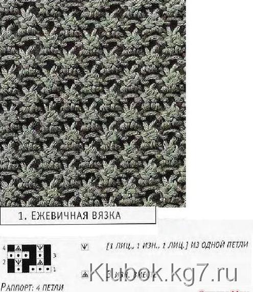 4ряд. *Из 1петли вывязать 3 (лиц., накид, лиц.), 3вместе изн.*