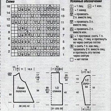 Lace stripe (width 12 sts): knit according to the pattern, which shows the right and wrong sides. Repeat from the 1st to the 16th row.