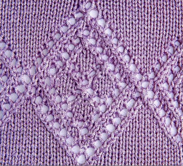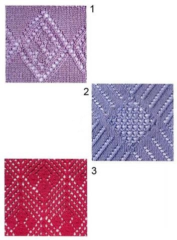 1. Число петель кратно 18 + 13 п. В изн. рядах все петли и накиды вязать изн. В ширину начинать с петель до раппорта, затем повторять петли раппорта и заканчивать петлями после раппорта. В высоту выполнить 1 раз с 1-го по 42-й р. или по желанию иначе.