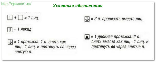 стрелка- протяжка( 1 петлю снять как лицевую, 1 лиц. и протянуть ее через снятую п.