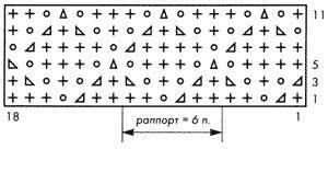 Раппорт состоит из шести петель. Число петель в ряду должно делиться на шесть плюс две кромочные петли.