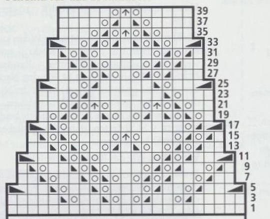 треугольник- 1 двойная протяжка ( 2 п. снять вместе как лиц., 1 лиц. и протянуть ее через снятіе петли)
