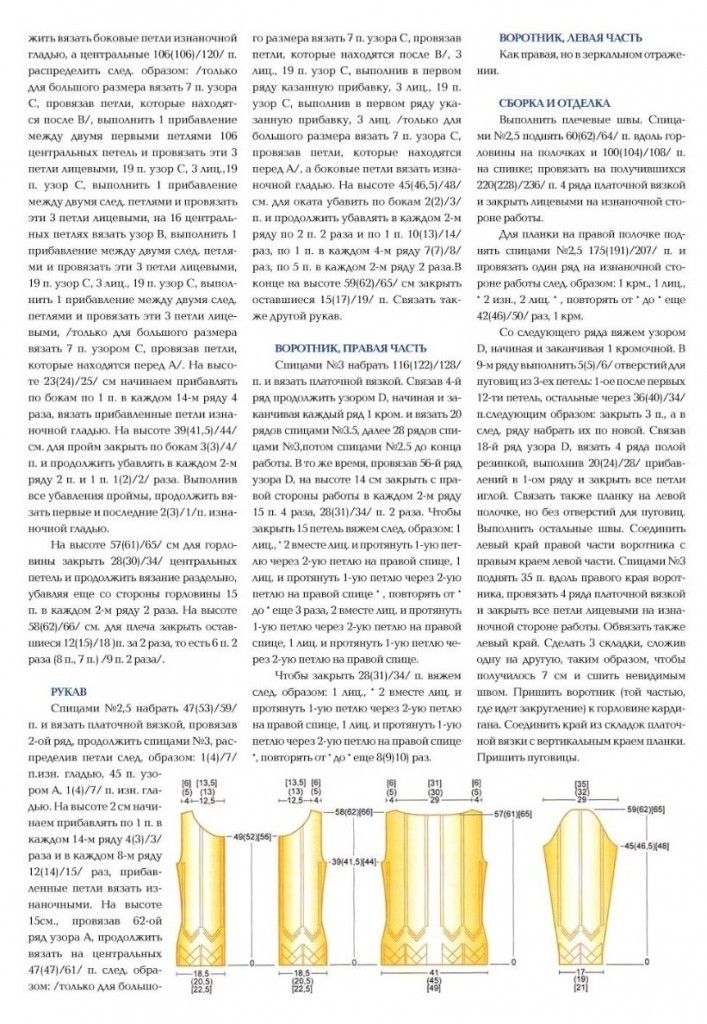 Узор A: схема A. Для маленького размера — средние 41 п. для рукавов всех размеров. Раппорт повторяется 2 раза, закончить петлями после второй * /для больших размеров добавить петли по краям по схеме/.