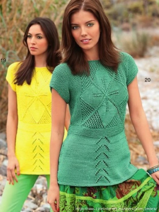 Вам потребуется: 500 (550) 600 г желтой или зеленой пряжи Toredo (40% хлопка, 40% полиакрила, 20% полиамида, 85 м/50 ); 1 длинные и 1 короткие круговые спицы и набор чулочных спиц № 4,5.