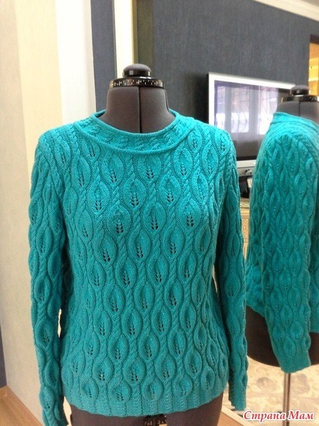 Бирюзовый пуловер спицами от sviridova-kst