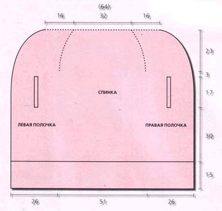 44 п. — левая полочка, 42 п. — спинка, 44 п. — правая полочка.