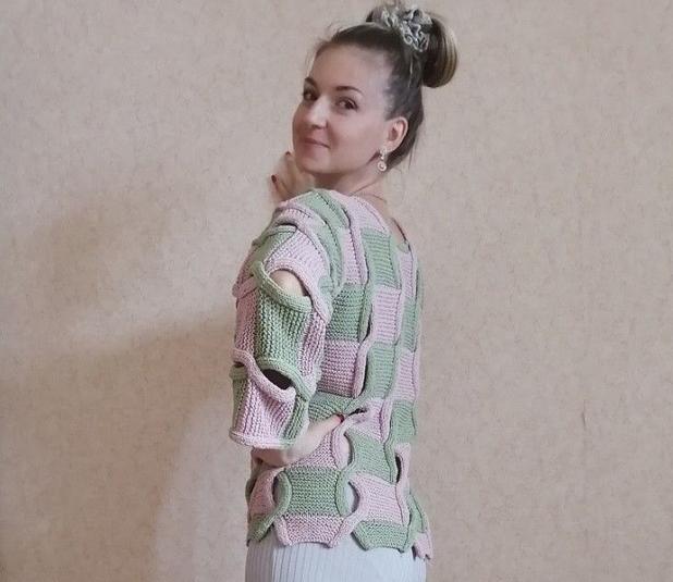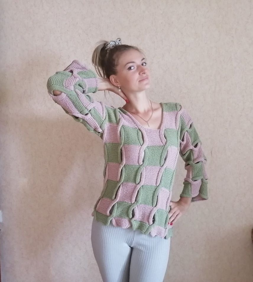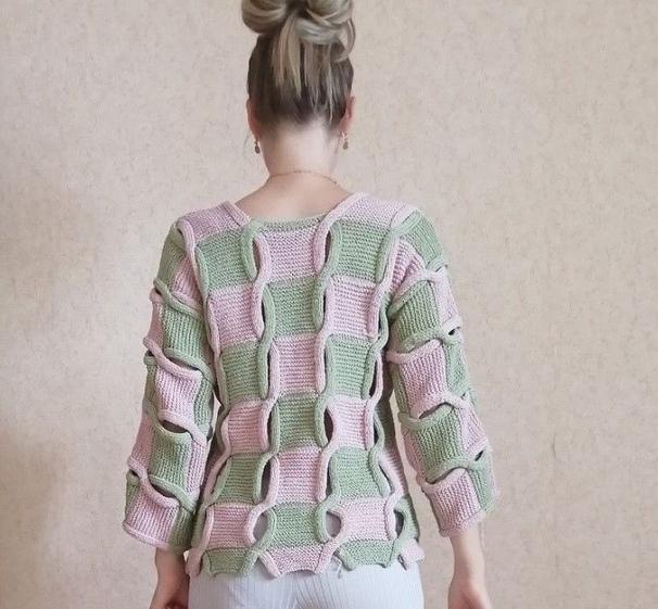Свободный двухцветный джемпер с «косами»