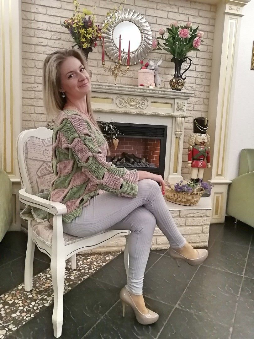 Через 47 см = 122 ряда от начального ряда закрыть для горловины средние 13 п. и обе стороны закончить раздельно.