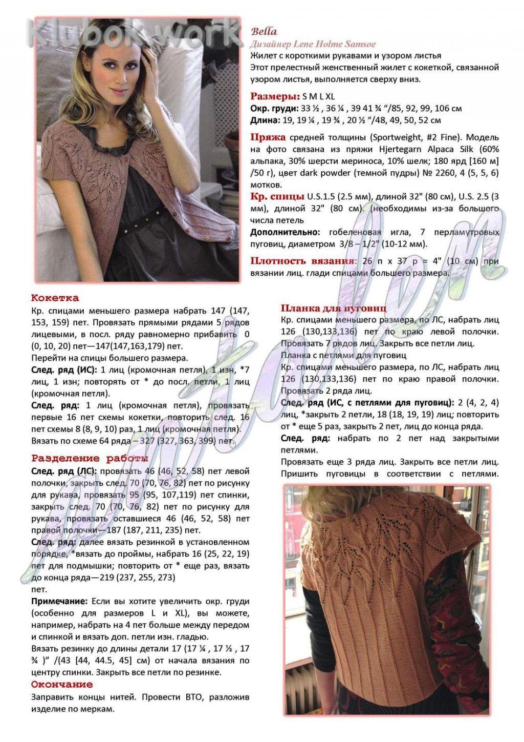 Этот прелестный женственный жилет с кокеткой, связанной узором листья, выполняется сверху вниз.