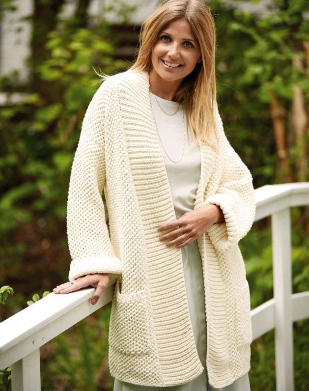 Белый кардиган спицами с карманамиKlubokhttp://klubok.work/1/2/8765/Klubokhttps://klubok.work/css/image/top-logo-en.pngВеликолепный свободный кардиган с карманами, отделанный широкой резинкой, незаменим в любой сезон.