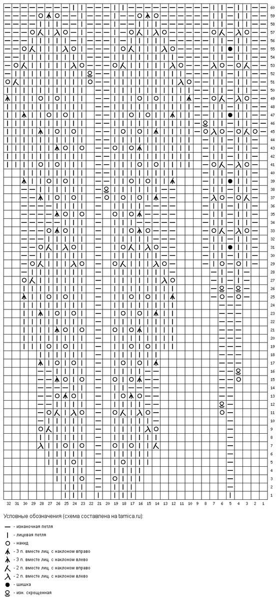 Убавляем по две петли с каждой стороны в каждом 6 ряду 9 раз. Убавления делаем провязывая две петли вместе с наклоном вправо с левой стороны от маркера и с наклоном влево — с правой стороны от маркера*.