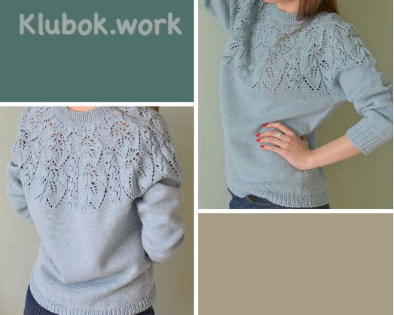 Джемпер с круглой ажурной кокеткой листьямиKlubokhttp://klubok.work/1/2/8768/Klubokhttps://klubok.work/css/image/top-logo-en.pngКокетка – интересный элемент одежды, который полюбился многим мастерицам, несмотря на сложность ее исполнения.Круглую кокетку вязать сложнее всего, нужно суметь сделать правильные расчеты, чтобы кокетка «легла» ровно на плечи, не волнилась и не стягивала изделие. Также важно учесть и связать росток, благодаря которому перед не будет съезжать назад.