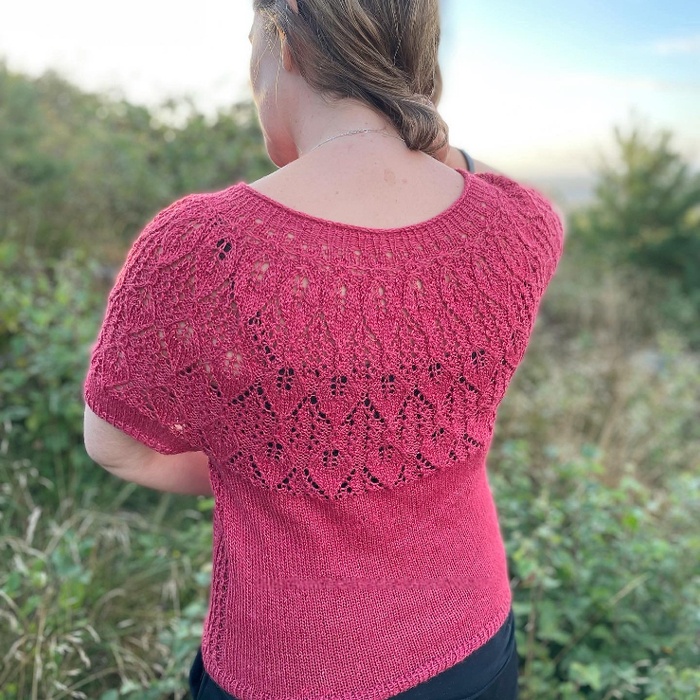 Я рекомендую вам ознакомиться с описанием, прежде чем начать. Этот топ вяжется сверху вниз, по кругу, с укороченными рядами для формирования горловины.